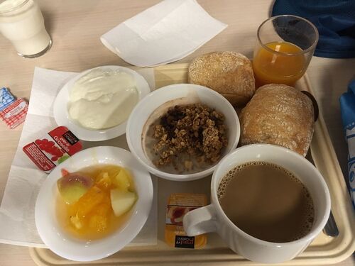 ユースホステルの朝食 なんだかわらわらと、たくさん並んでますが www、サンマロで宿泊したユースホステルの朝食です。www (*^^*) ハムやチーズはなかったのですが、もう充分です! こってりとした脂肪分たっぷりそうな、ヨーグルト。 普通に美味しい…